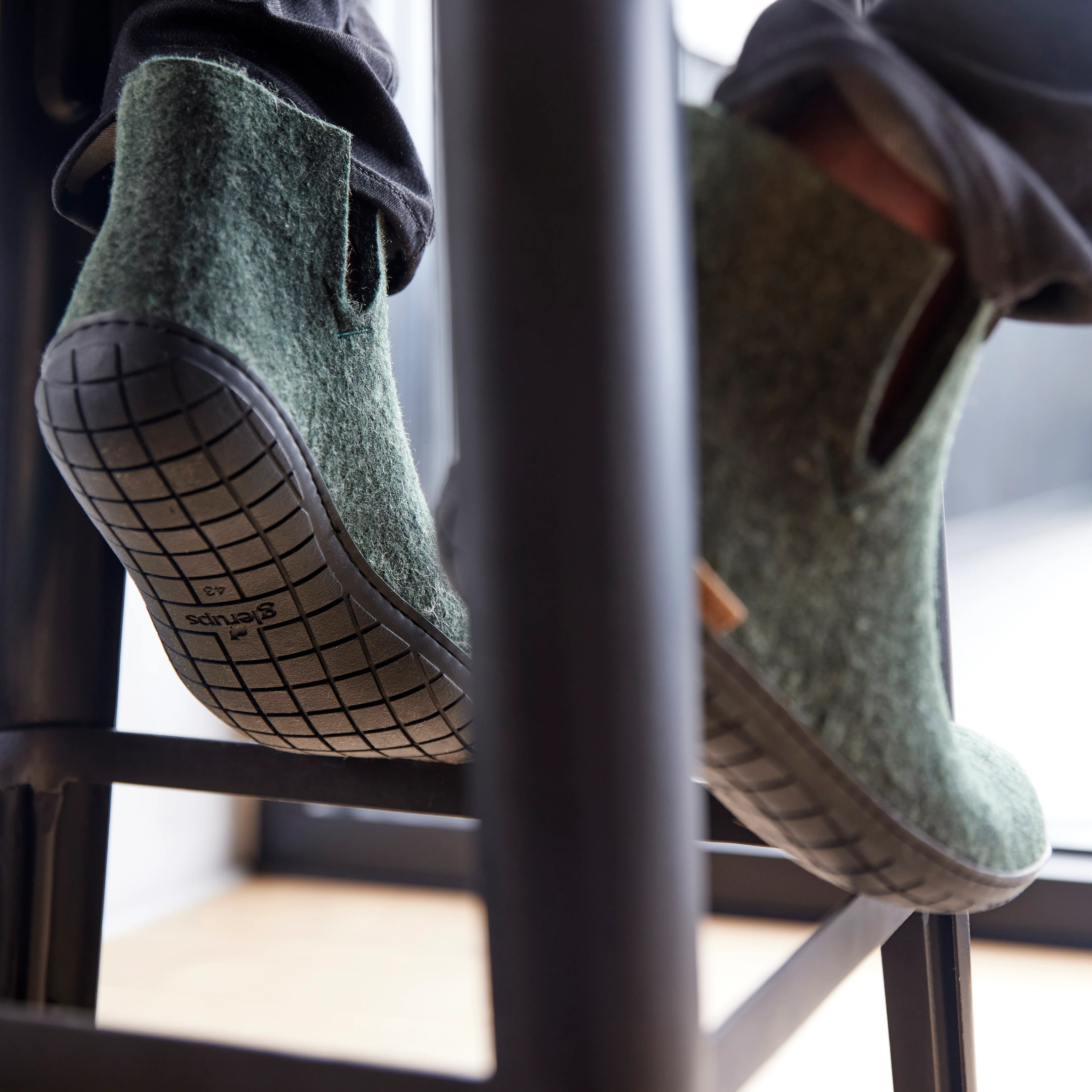 Our boots are made of 100% pure, natural wool in the colour forest with a sole of natural rubber in the colour black.